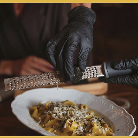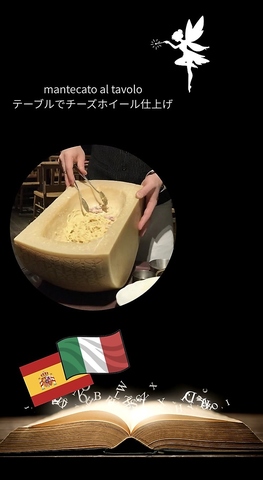 総重量17kgを超える大きなホイールチーズを使いテーブルで濃厚パスタを仕上げます!