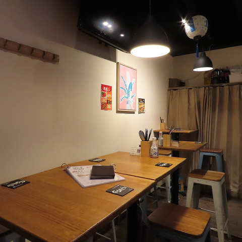 4名様まで対応可能なテーブル席は、会話もお酒も楽しみたい飲み会にピッタリ◎カジュアルで温かい雰囲気の店内だから、気心の知れた友人との集まりにもご利用いただけます!