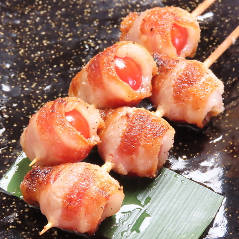 【本酒場名物!肉野菜巻き】能登産豚バラは一本一本焼いており、野菜肉巻きや変わり串など、多種多彩な肉巻き串を当店ではご提供!ヘルシーなので女性にも大人気です!是非ご堪能ください♪※串2本から注文可能です。