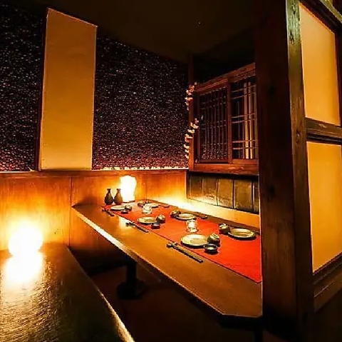 | 掘りごたつ個室 | 20名様×1 | .木目を活かした内装が温もりを感じさせるアットホームな空間です。2~4名様用のテーブルを10卓構えており、壁側はゆったりくつろげるベンチシートになっております。人数やシチュエーションに合わせて、テーブルをセッティングいたしますので、お気軽にご相談ください。 |