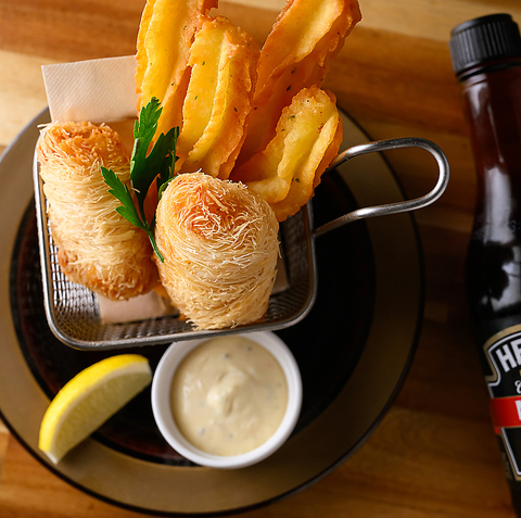 カダイフを衣に使い歯触りサクサク♪自家製ポテトはチュロス型!お好みの特製ソースとともに♪