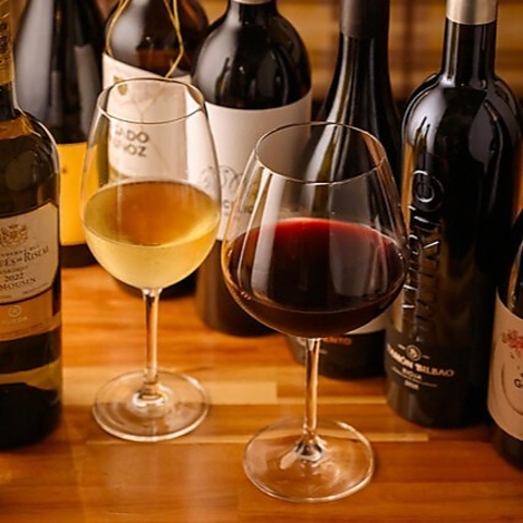 イギリス銘酒やスペインカヴァ、白赤ワイン20種類以上と豊富。気分や料理に合わせてお選びください♪