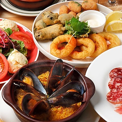 多彩な料理を組み合わせたコースは、前菜のタパスからデザートまで流れを意識した構成が魅力です。彩りや盛り付けにも工夫を凝らし、食事の時間そのものを楽しめる内容に。集まりの席を華やかにしたいときにも選びやすいコース料理です。