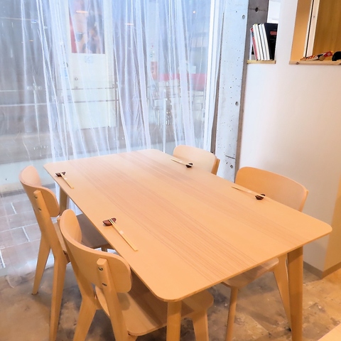 2名用のテーブル席は、デートや親しい友人との食事にぴったりの落ち着いた雰囲気を提供します。コンパクトでありながら、ゆったりとした空間が確保されており、会話を楽しみながら食事を堪能できます。プライベート感があり、特別な時間を過ごすのに理想的な席です。シンプルでありながら、心地よい空間が魅力です。