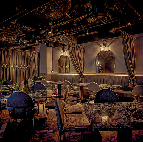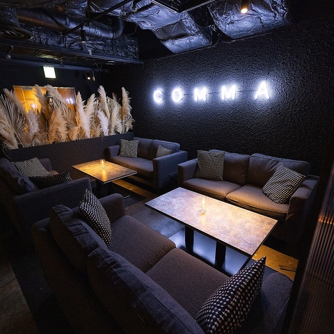 煌びやかでシックな雰囲気を持つソファー席空間。浮かび上がるCOMMAのライトがシックな雰囲気を演出。シーンに合わせて席タイプをお選びいただける店内です!(梅田/イタリアン/ダイニングバー/デート/夜景/記念日/誕生日/サプライズ/東通り/中崎町/大阪駅/梅田駅/バースデープレート/梅田駅ディナー)