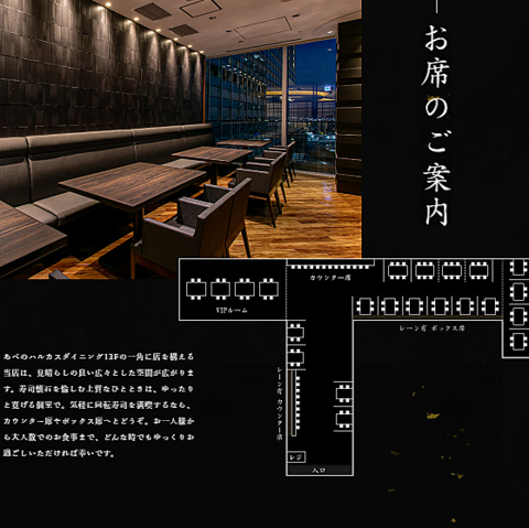 あべのハルカス13階という立地の当店!窓際から見える景色は絶景です。昼はもちろん夜の夜景は格別です!!ご家族との大切なお食事やデートやお買い物帰りの際のお食事等にも便利!窓側のお席は数に限りがありますので早い者勝ち!!空き状況などお気軽にお問合わせください