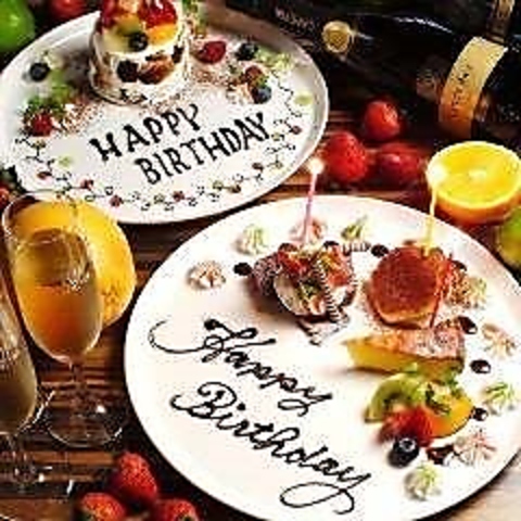 誕生日や記念日、その他お祝い事にメッセージ入り特製デザートプレートをご用意いたします。ご提供のタイミングなどは、当日スタッフまでお伝えください。その他サプライズのご要望もお気軽にご相談ください。できる限りお手伝いさせて頂きます。