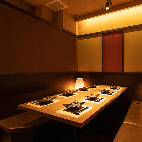 当店は全席完全個室席!2名様~個室でご利用可能です!座り心地の良さが会話を弾ませ、親しみあるひと時をお約束します。照明がほんのり照らす落ち着きある雰囲気も好評いただいております☆