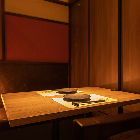 デートや記念日でのご利用におすすめの個室席!扉付き完全個室となっておりますので周りを気にすることなくお過ごし頂けます。静かにゆったりと安らげる空間となっております。お席のみのご予約も承っております。