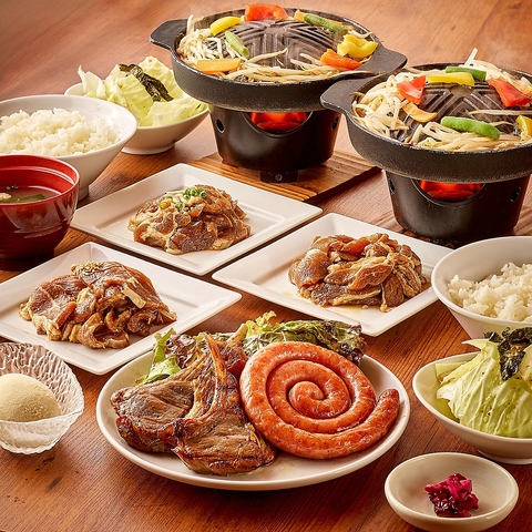 自家製の巻き巻きソーセージソーセージ、秘伝のタレに付け込んだラムステーキ、ラムリブロースジンギスカンやマトンジンギスカンなど食べ比べもできるコース内容。会社の宴会や飲み会、ご友人とのお食事にもおすすめ♪どのお肉がお好みか是非お試しください♪