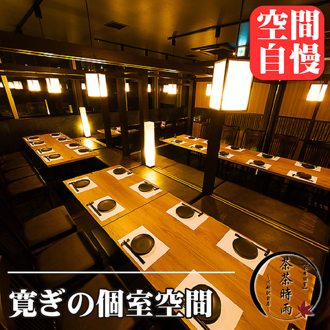 川越での誕生日や記念日に最適なプライベート空間をご用意しております。扉付き完全個室となっておりますので周りを気にすることなくゆったりとした時間をお過ごし頂けます。川越で飲み放題コースがおすすめの個室居酒屋をお探しの際は茶茶時雨へ。飲み放題も個室も充実しております!![茶茶時雨]川越駅近く、飲み放題と個室が充実の居酒屋]