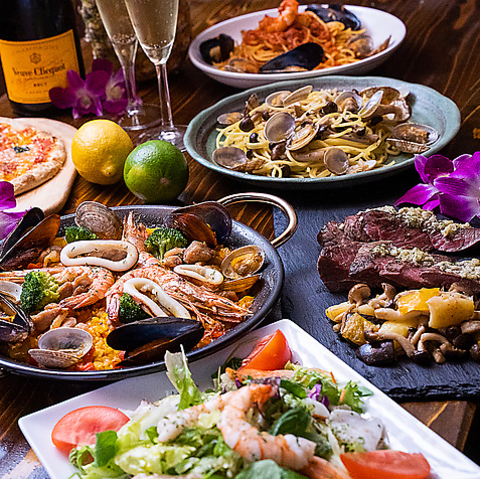 各種宴会にぴったりな2.5時間飲み放題付きのリーズナブルなコースです◎大人数も大歓迎♪リゾート気分でオシャレにパーティーをお楽しみ下さい。結婚式の二次会としてもご利用いただけます♪