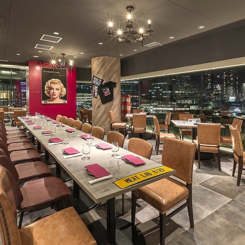 【大切な1日に。】広々とした配置のお席と、大きなガラス張りの窓から見える景色が素敵なお店です。記念日・誕生日など大切な1日を彩る、夜景が見えるお席をご用意しております。メッセージ付きプレートのご用意も可能です。当店自慢のお肉料理を大阪の夜景を眺めながらお楽しみ頂けます。