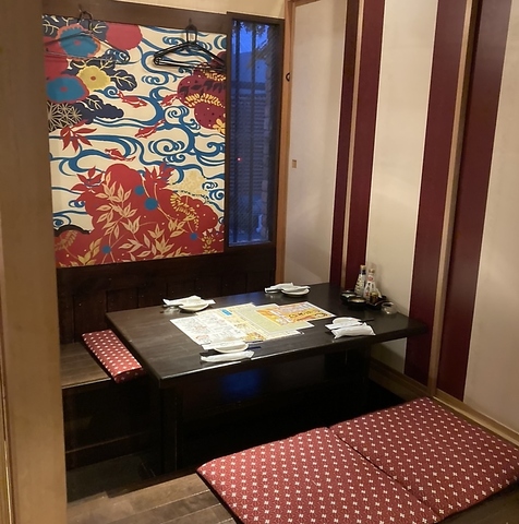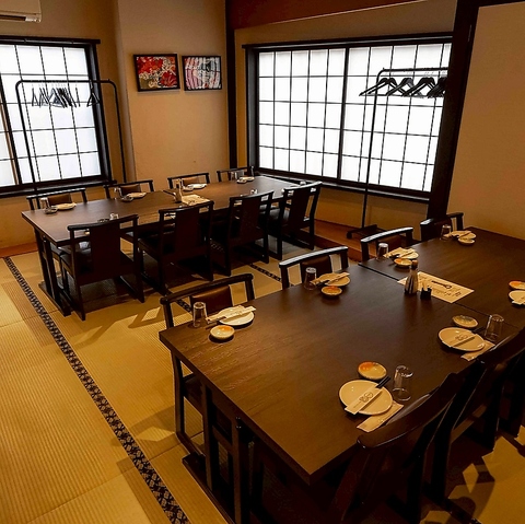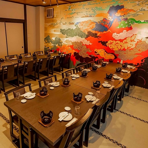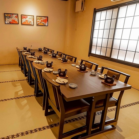 当店では様々な人数でご利用いただける個室席がございます。襖が仕切りになっており、完全個室となっておりますので、会社ご宴会、友人とのご宴会、ご家族でのご宴会、接待等様々なシーンでご利用いただけます。最大80名様ほど迄ご利用いただけますので、大人数宴会もお気軽にお問合せ下さい。