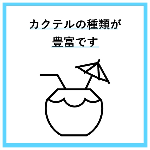 | お酒 | カクテル充実、焼酎充実、日本酒充実、ワイン充実 |
