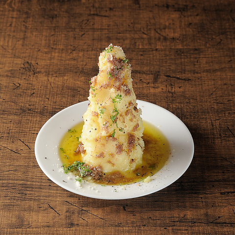 生クリームでコクをプラスし、舌触り滑らかなマッシュポテトに濃厚なアンチョビソースの塩味がたまらないです!ポテトタワーを崩して少しずつお召し上がりください。お酒がススム一品で常連さんはほとんど頼む人気メニュー!