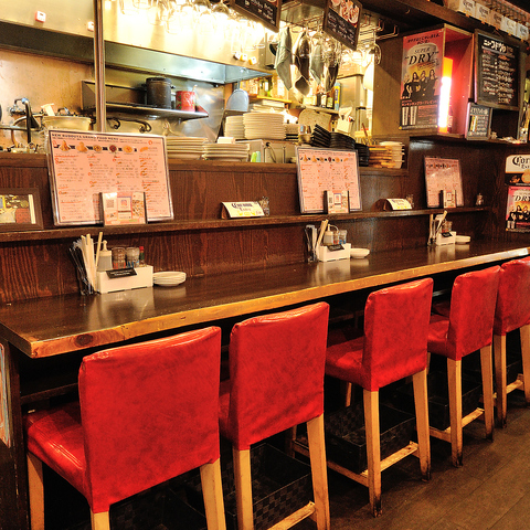 6名様までご利用可能なカウンター席ございます。おひとり様でもカップルや女子同士とか使い方は様々。ふらっとちょい飲みや、がっつりヒトリメシ。お好きなようにお使いください。