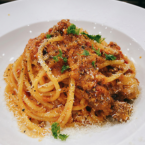 香ばしく焼き上げた厚切りベーコンと濃厚ソースが絶妙に絡む特製カルボナーラ。卵黄をとろりと絡めれば、さらにまろやかで贅沢な味わいに。ボリューム満点ながらも最後まで飽きずに楽しめる一皿は、洋食好きも納得の満足感。新橋の宴会や飲み放題コースにもぴったりな人気メニューです。