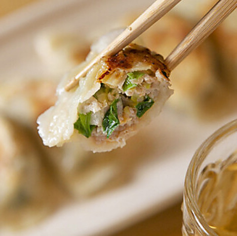 皮から丁寧に手作りしている当店の看板メニュー♪パリッとした食感と、噛むたびにジュワッと広がるジューシーな餡の旨みがたまらない一品です。手間暇かけているからこそ、どこか懐かしく温かい味わいに仕上がっています◎ぜひお召し上がりください。
