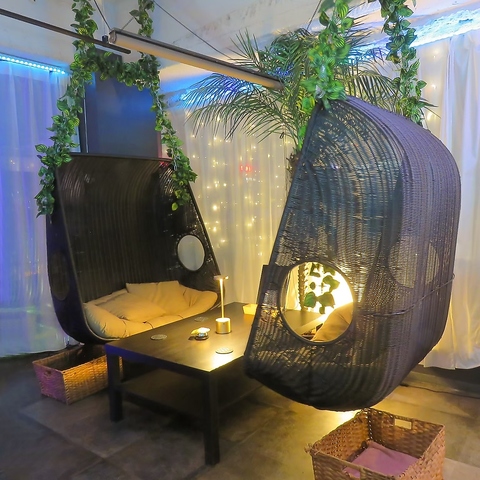 【非日常空間×シークレットリゾート】大人のシークレットリゾートをイメージ♪ブランコ席・リクライニングソファ・テーブル席・カウンター席あり!!《送別会 歓迎会 貸切 個室 飲み放題 小倉 小倉駅 女子会 デート 合コン 二次会 ウェディング》