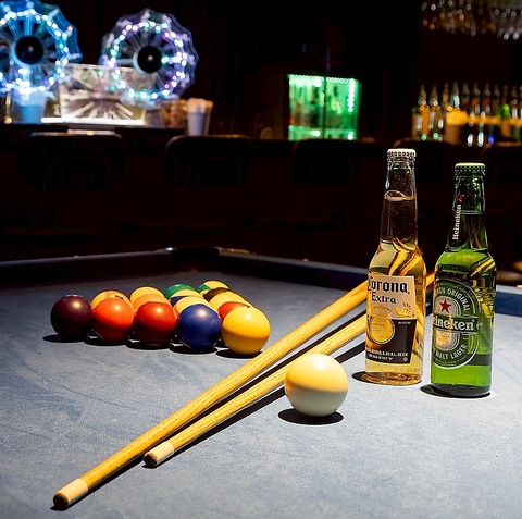 ビリヤード・カラオケ・ダーツ・TVゲーム・テーブルゲームが無料で遊び放題♪お菓子も自由に食べ放題!300種類以上の飲み放題とあわせてお楽しみください★