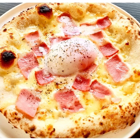 ベーコン、半熟たまご、クリームソース