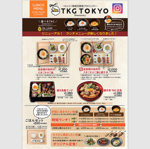 - 【TKG KOBE 提供時間】月~金(平日)◆11:00~14:30(Lo14:00)土日祝◆11:00~15:00(Lo14:30)