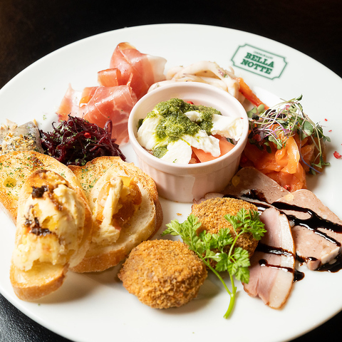 ビール・ワイン込みの2時間飲み放題に、当店自慢のミートボールパスタや豚肩ロースのロースト、デザートまで付いた全8品の贅沢なコースです♪通常6000円のところ5000円で一番お得にご用意しております!会食や落ち着いたプライベート宴会にもおススメです。迷ったら是非ベラノッテプランを♪
