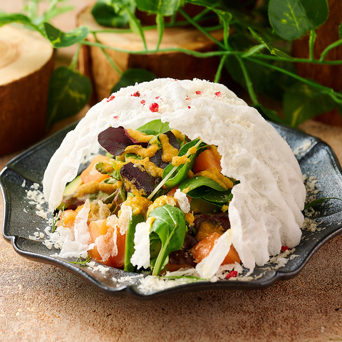 まるで雪室かまくらのようなユニークなサラダ◎今までにない見た目のメニューはお客様に新しい体験と共に味覚を刺激します。心落ち着くかまくら個室で料理を目で見て楽しみ、会話が盛り上がること間違い無し♪女子会や合コン、デートなどにぜひご利用ください。