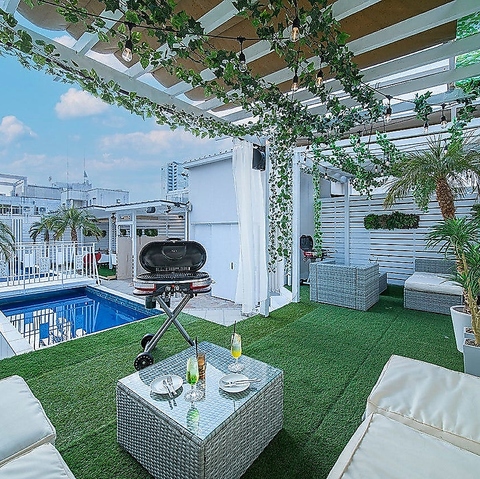 アメ村にプール!?と驚かれること間違いなしのプールサイドテラスで、手ぶらバーベキューが楽しめるプランをご用意!牛ロースやハラミを焼きながら、仲間と一緒に盛り上がりませんか?さらに、BBQプラン限定で90分飲み放題が+1,100円で付けられます!(通常は60分1,100円)コスパ抜群のビアガーデンをお楽しみください!