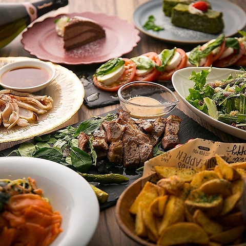会社宴会や送別会には、飲み放題付「宴会デラックスコース」がおすすめです◎メインは牛ハラミのバルサミコソース!そのほか、特製パスタにエビのタルタル ナッツ和え、お口直しのひと口ドルチェまで、質にこだわるワンランク上の宴会に最適な内容。コースはお昼からご注文OK。ランチパーティーにもぜひご利用ください♪