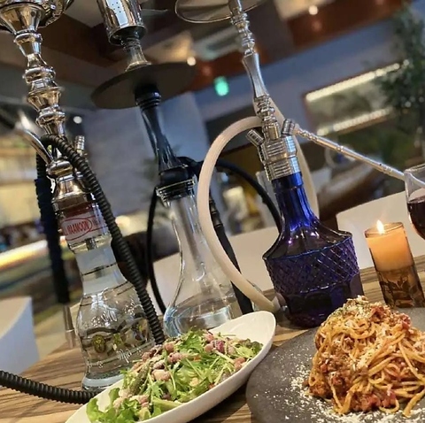 南国リゾートのような非日常空間で、肉料理・本格イタリアンと共に“香り”を楽しむ優雅な時間を。シーシャは全席で利用可能なので、ゆったりとしたソファ席や風が心地よいテラスなど、お気に入りの場所でリラックスできます。お得な飲み放題付セットもご用意。昼・夜を問わず、食後の余韻に至福のチルアウト体験をぜひ。