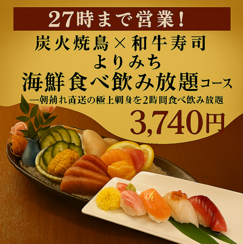 | 店名 | 27時まで営業!炭火焼鳥×和牛寿司 個室居酒屋 よりみち立川本店 |