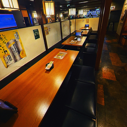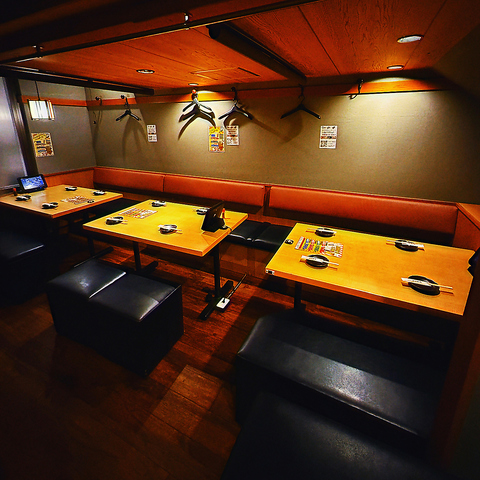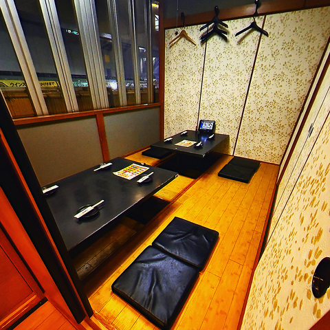 雰囲気自慢の掘りごたつ席は個室、半個室の各種ご用意しております!!周りを気にせずゆったりお寛ぎいただける人気の席となっております!!掘りごたつ席は団体様にもご利用いただけるレイアウトとなっており、会社宴会や結婚式の二次会、歓送迎会など様々なシーンに対応しております!!立川での大型宴会に◎