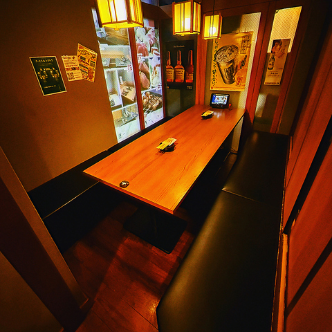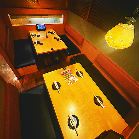 雰囲気自慢の掘りごたつ席は個室、半個室の各種ご用意しております!!周りを気にせずゆったりお寛ぎいただける人気の席となっております!!掘りごたつ席は団体様にもご利用いただけるレイアウトとなっており、会社宴会や結婚式の二次会、歓送迎会など様々なシーンに対応しております!!