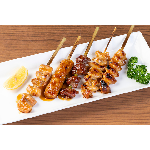 自慢の焼鳥は厳選した新鮮な地鶏を使い、料理長自らその日の毎朝丁寧に串打ちしております。脂肪が少なく、キュッと締まった肉質の地鶏は、適度な弾力と口の中いっぱいに溢れ出す肉汁の旨味に虜になるお客様が続出しています♪備長炭でじっくりと火を通した、渾身の"一串"をご堪能下さい!!焼き鳥は飲み放題付きコースでもお楽しみいただけます◎