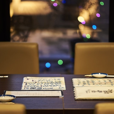 美味しい食事は心地よい空間で。ご親族が揃うお顔合わせやお食い初めといった慶事や法事なら個室へ。接待や記念日のデートには職人が腕を振るうカウンター席へご案内いたします。 四季を盛り込んだコース料理と合わせて心ゆくまでご堪能ください。