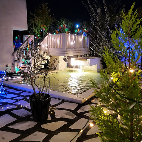 夜にはライトアップされるテラス・中庭もございます。各お席からイルミネーションを眺めながらお食事をお楽しみください。