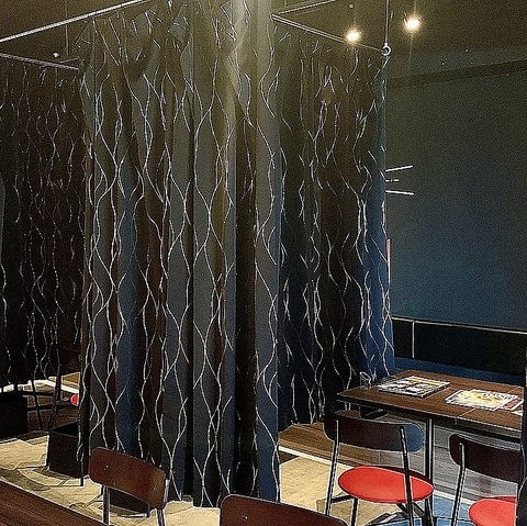【カーテン個室/2-4名様】喫煙可◎視覚的なプライバシーを提供しつつ、広々とした空間で料理と会話を楽しめます。カーテンで仕切れば、友人や家族との特別な食事がより特別に。シックな雰囲気とアットホームさが融合し、食事をより一層楽しませてくれます。