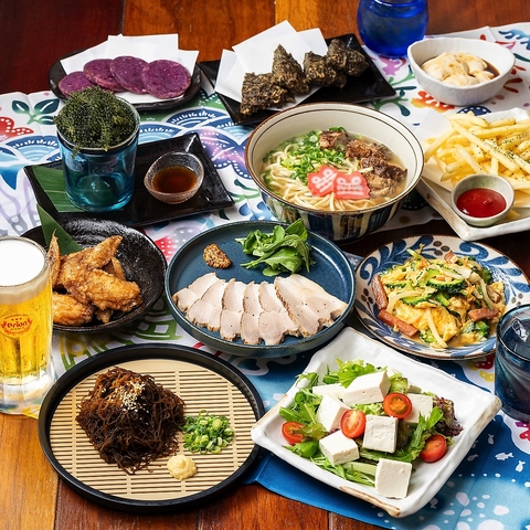 2H飲み放題!もずくの天ぷら・チャンプルー・ソーキそば等全11品(画像はイメージです)