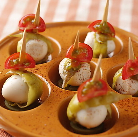 うずらの卵と青唐辛子のピンチョスのハーモニー