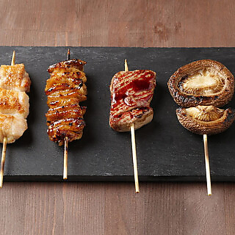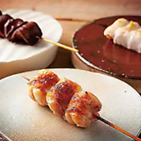 もも串、つくね、ぼんじり、ハツ、ささみ、砂肝、せせり、手羽先を、一本ずつ丁寧に焼き上げました。希少部位の白レバー/カッパ/えんがわ/つなぎ/はつもと/もございます。