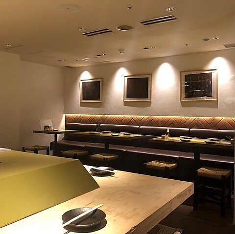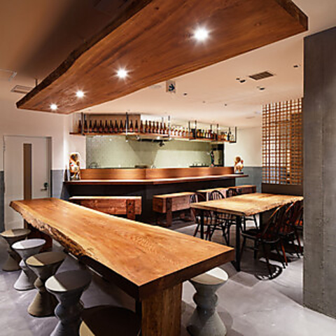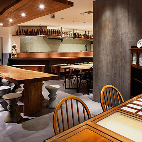 無垢材のテーブルと温かみのある照明が織りなす、洗練された店内。広々とした席配置で、落ち着いた時間をゆったりとお過ごしいただけます。
