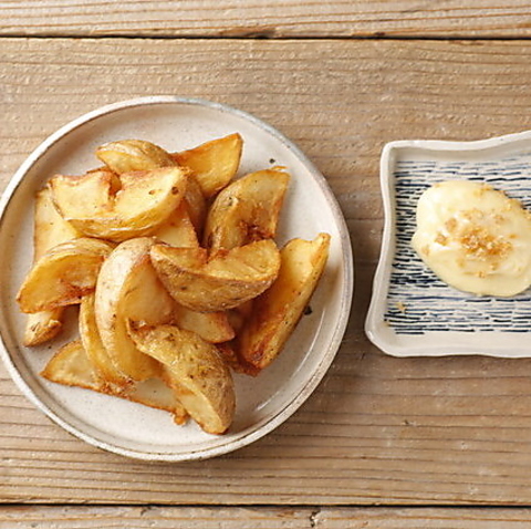 外はカリッと中はホクホクのポテトフライに、鶏屋自慢の自家製マヨネーズをたっぷりと。まろやかな旨みが後を引く、やみつきの一皿です。
