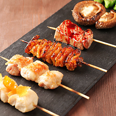 当店断然おすすめの炭火で焼き上げた串焼き。5本盛りから希少部位を含めた10本盛りまで、その日に合わせたスタイルでお楽しみください
