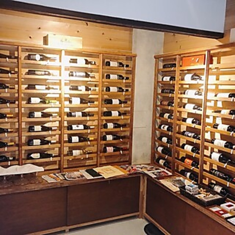 店内にはイタリア各地から厳選した郷土ワインを常時多数取り揃えております。ショップスペースのワインはボトルワインリストも兼ねており、ショップ価格+抜栓料1100円(税込)で店内でお飲みいただけます。普段なかなか出会えないワインも楽しめるのが魅力です。
