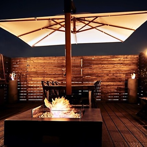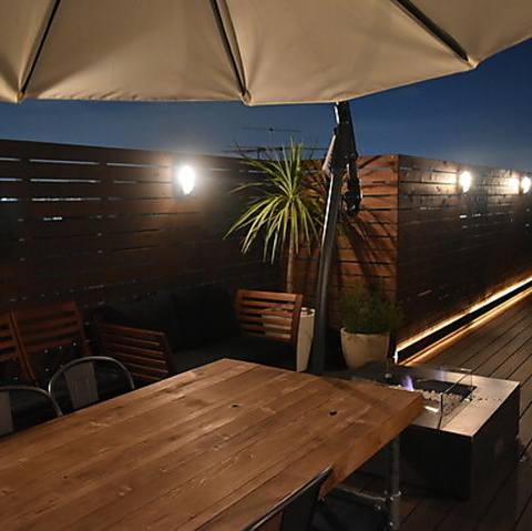 大人気のテラス席。夜風を感じ愉しむBBQ、西海岸を感じるプライベート空間で夜は更に盛り上がります!
