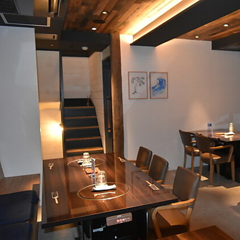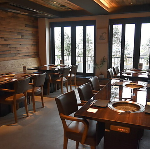当店では、お客様が求めるハイエンドな空間をご用意しております。特に注目は、心地よい夜風を感じながらBBQを愉しめるテラス席で、西海岸を思わせるリラックスした空間は夜をさらに盛り上げます。カウンター席ではTV観戦も可能で、シックな一人焼肉にも最適。どうぞ、心ゆくまでおくつろぎください◎
