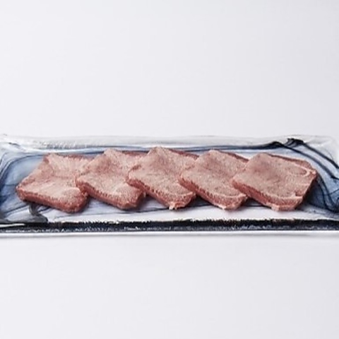 タンの根元の部位。通称:タン元。美しいサシが入り、柔らかくとろける味わい。薄切りでご提供。サッと焼いたら塩昆布とともにお召し上がりいただくのが当店のオススメです。とろける脂と塩昆布の旨みや塩味が口の中で合わさるハーモニーを味わってください。