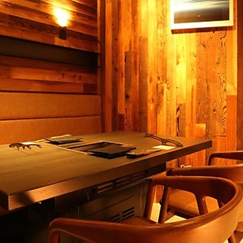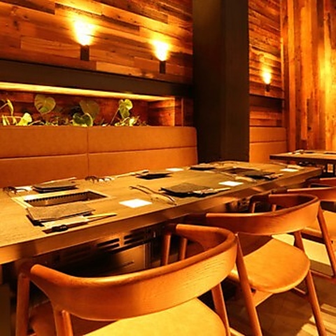 重厚なドアを開けると、そこはまさに大人の隠れ家。落ち着いた雰囲気の店内には、カリフォルニアを彷彿とさせるカジュアルなウッド調の壁面が広がり、有名ブランドがプロデュースしたこだわりのインテリアデザインが光ります。照明とBGMはランチとディナーでスタイルを変え、時間帯によって異なる表情を見せる、極上の焼肉体験をお届けします。